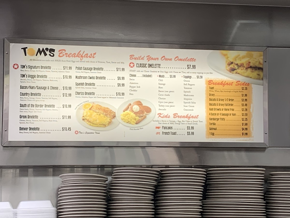 At Tom's Famous Family Restaurant, the heart of Escondido, you’ll find a menu that brings comfort and flavor together in the best way possible. Whether you’re in the mood for a hearty breakfast to start your day or craving a classic diner favorite, the Tom's Famous Family Restaurant 23 Menu offers something for everyone. From tender steaks to freshly prepared seafood, every dish is crafted with care using only the finest ingredients. Don’t forget to try their signature sandwiches or their famous homemade pies - perfect for dessert or a quick snack. Cozy and welcoming, this spot is more than just a meal; it’s an experience that brings families together over delicious, timeless dishes.